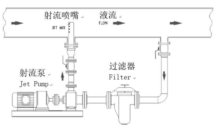 混合系統(tǒng)工作時(shí)將流程流體中的一小部分抽出,在取樣探頭上游將其高速噴射出,射流會(huì)在管道內(nèi)產(chǎn)生最大的能量注入,通過在管道內(nèi)產(chǎn)生螺旋旋轉(zhuǎn)使整個(gè)橫截面實(shí)現(xiàn)各種流相狀態(tài)的恰當(dāng)分散和均勻分布,確保在盡量不造成管線壓力降低的情況下實(shí)現(xiàn)快速高效混合。取樣探頭在充分混合的液流中取樣,保證了樣品的代表性。